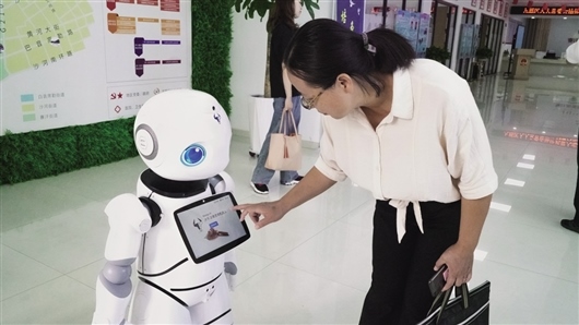 前來參加合唱團(tuán)排練的居民紀(jì)忠珍,一進(jìn)門就被這個(gè)“小家伙”所吸引,在工作人員的幫助下,紀(jì)忠珍圍著“大牛”不停地問這問那,沒想到,“大?!倍寄軐Υ鹑缌??!拔腋杏X這個(gè)機(jī)器人太好了,非?,F(xiàn)代化,方便我們隨時(shí)咨詢。”