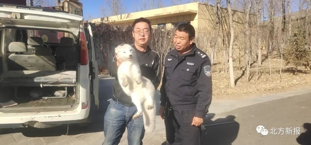 民警將白狐送往呼和浩特市野生動物救助中心救治