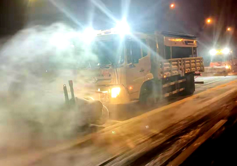 北疆新聞網(wǎng)、北疆新聞客戶端消息(記者 劉嬙)12月5日晚,內(nèi)蒙古自治區(qū)首府呼和浩特出現(xiàn)降雪天氣。為防止道路積雪結(jié)冰,保障廣大市民和車輛出行安全,呼和浩特市和各區(qū)兩級(jí)環(huán)衛(wèi)部門以雪為令,聞雪而動(dòng),按照清雪工作預(yù)案,分工明確,責(zé)任到人,機(jī)械和人工清雪緊密配合,第一時(shí)間在市區(qū)道路實(shí)施機(jī)械及人工清雪作業(yè),全面清理道路積雪結(jié)冰,確保高標(biāo)準(zhǔn)、高質(zhì)量、高效率地完成清雪任務(wù)。