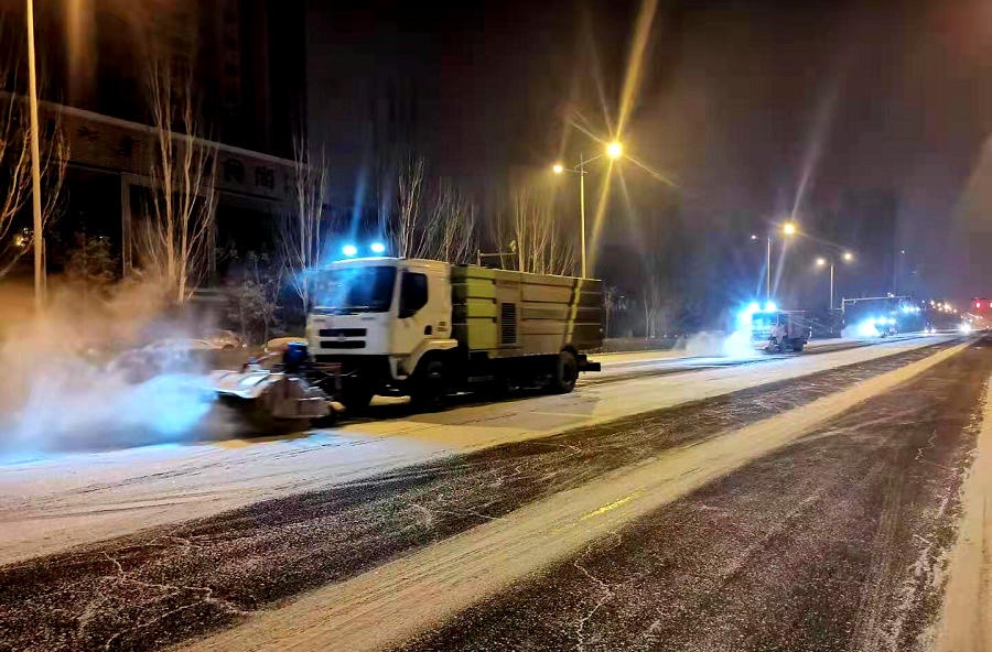 呼和浩特環(huán)衛(wèi)部門聞雪而動(dòng)連夜清掃道路積雪