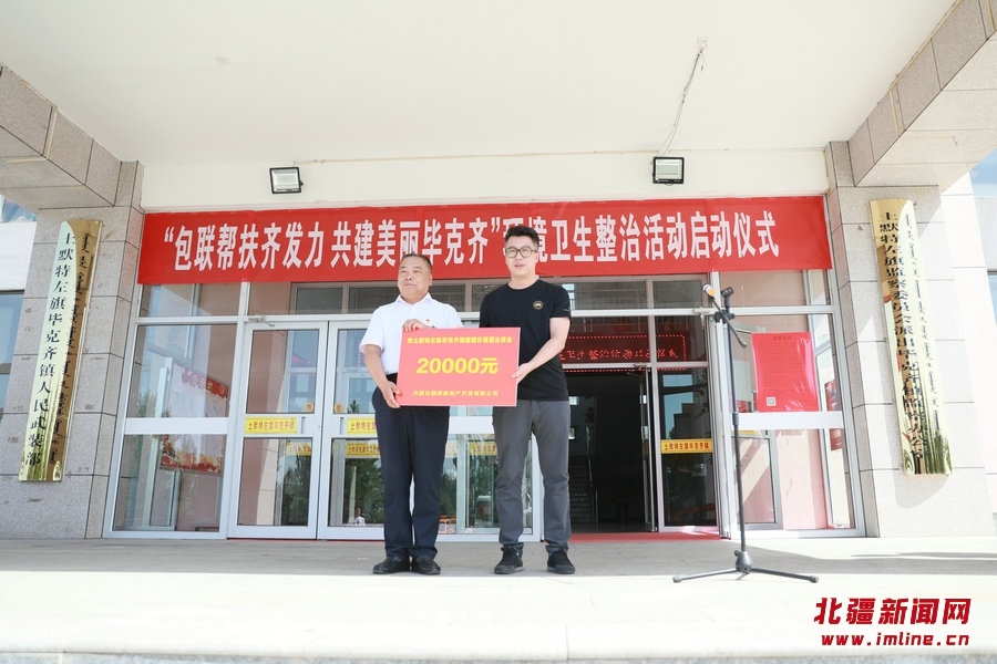活動現(xiàn)場,呼和浩特市外事辦、呼和浩特市退役軍人服務中心、呼和浩特市養(yǎng)老服務中心、呼和浩特市城環(huán)環(huán)衛(wèi)產業(yè)發(fā)展(集團)有限公司、內蒙古鵬輝房地產等5家單位,向包聯(lián)幫扶單位捐贈了價值3萬元的分類垃圾桶和2萬元環(huán)境整治資金。