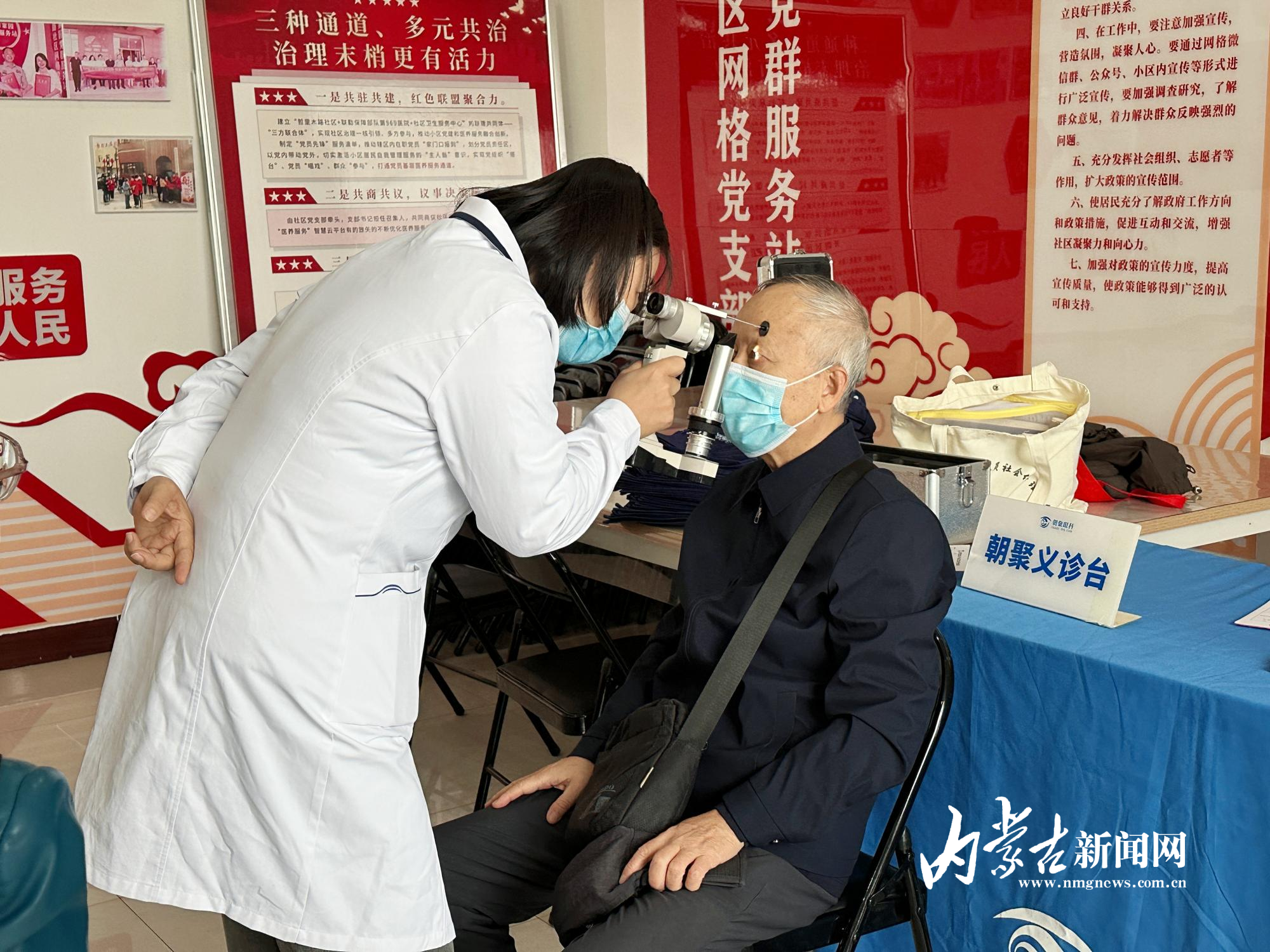“醫(yī)生,我最近看報(bào)紙總覺(jué)得字發(fā)虛,是不是白內(nèi)障又加重了?”“您別著急,先坐好,我?guī)湍屑?xì)查查眼底?!?0月10日上午,呼和浩特市新城區(qū)海拉爾路街道哲里木路社區(qū)戎輝小區(qū)活動(dòng)室內(nèi)暖意融融,醫(yī)護(hù)人員正耐心地為居民做眼部檢查。當(dāng)日,哲理木路社區(qū)聯(lián)合內(nèi)蒙古朝聚眼科醫(yī)院在這里開(kāi)展眼科義診活動(dòng)。