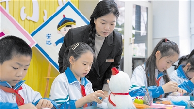 “全國大眾冰雪季給我們帶來了一個絕佳的主題切入點,讓傳統(tǒng)的羊毛氈工藝與冰雪運(yùn)動相互交融碰撞,孩子們在戳刺羊毛的過程中,對冰雪文化有了更深層次的理解,也對非遺技藝充滿敬意?!苯】到中W(xué)美術(shù)教師山丹邊說邊悉心指導(dǎo)學(xué)生把握形狀、色彩與紋理,幫助他們將創(chuàng)意更好地在羊毛氈作品中呈現(xiàn)?!拔以谥谱鬟@個滑雪小人的時候,就一直在想自己滑雪時的快樂,每戳一針都很用心,希望能把這份快樂表現(xiàn)在作品里?!彼哪甓鄬W(xué)生宋子祺說。