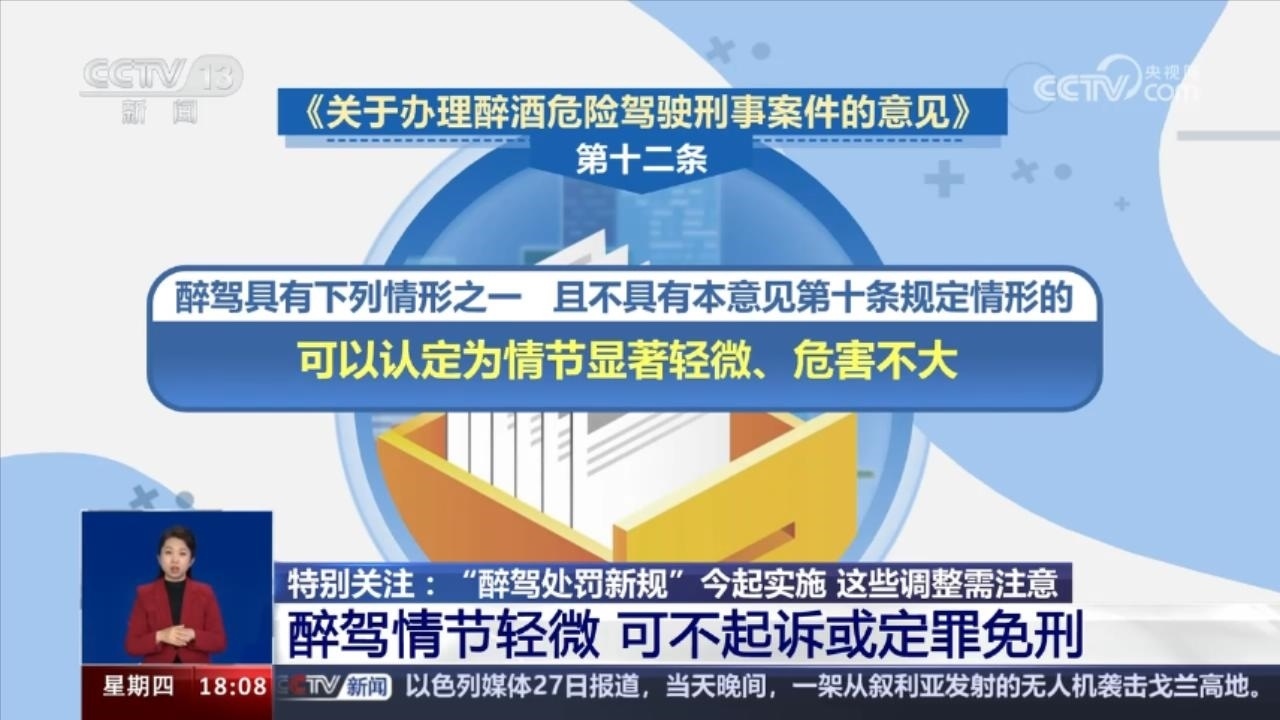 “醉駕處罰新規(guī)”開始實施:15種情形從重處理 10種情形一般不適用緩刑 12月28日開始,《關(guān)于辦理醉酒危險駕駛刑事案件的意見......