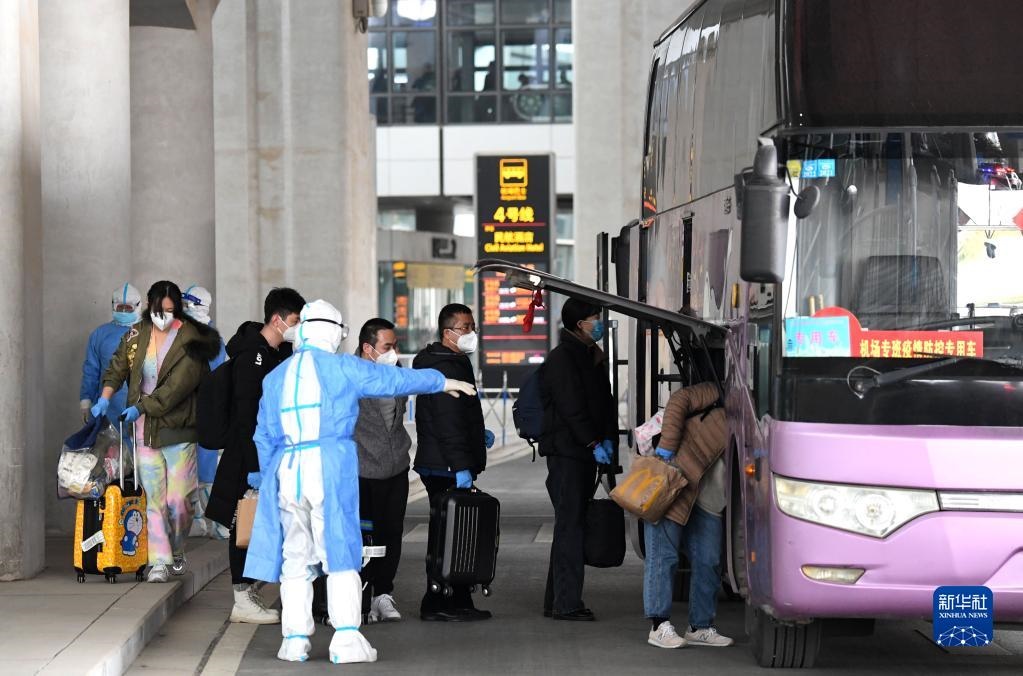 3月5日,抵達鄭州新鄭國際機場的中國公民準(zhǔn)備前往隔離酒店。當(dāng)日上午9時46分,第二架接返自烏克蘭撤離中國公民臨時航班安全抵達鄭州。新華社記者 郝源 攝