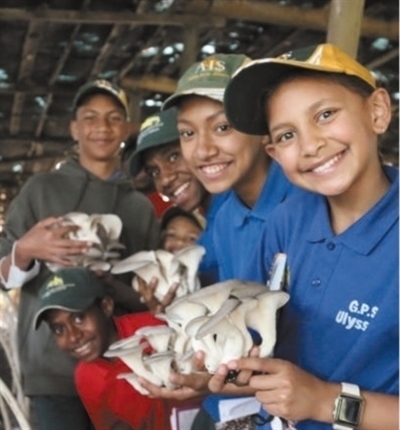 在巴布亞新幾內(nèi)亞東高地省,澳大利亞國際學(xué)校學(xué)生到菌草示范基地參觀學(xué)習(xí)。中國國家菌草工程技術(shù)研究中心供圖