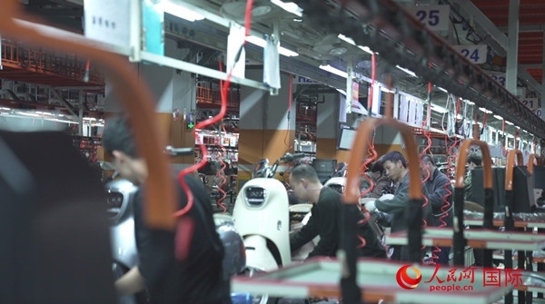雅迪生產車間。人民網 彭昱凱 攝