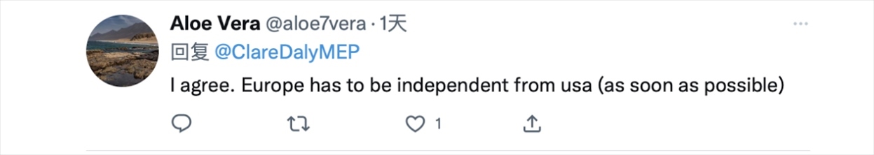 “我同意。歐洲必須從美國獨(dú)立出來(盡快)?!薄?/p>