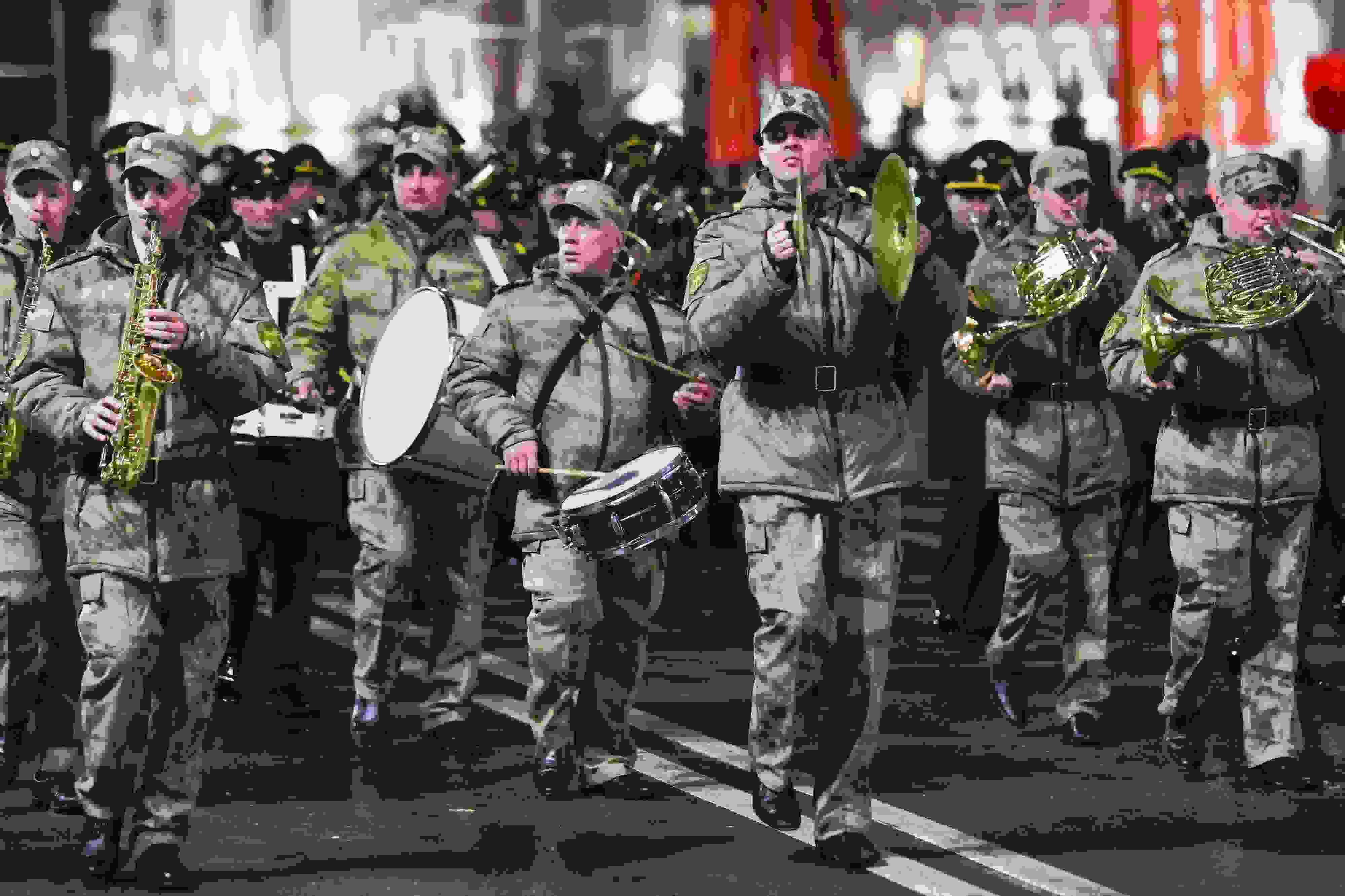 當地時間2023年5月2日,俄羅斯頓河畔羅斯托夫,士兵們參加勝利日閱兵彩排。 視覺中國