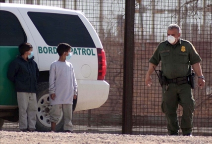 這張2021年3月27日在墨西哥華雷斯拍攝的照片顯示,兩名來(lái)自危地馬拉的移民兒童在跨越美墨邊境的里奧格蘭德河后,等待接受美國(guó)邊境巡邏隊(duì)人員的處理。新華社發(fā)(戴維·佩納多攝)