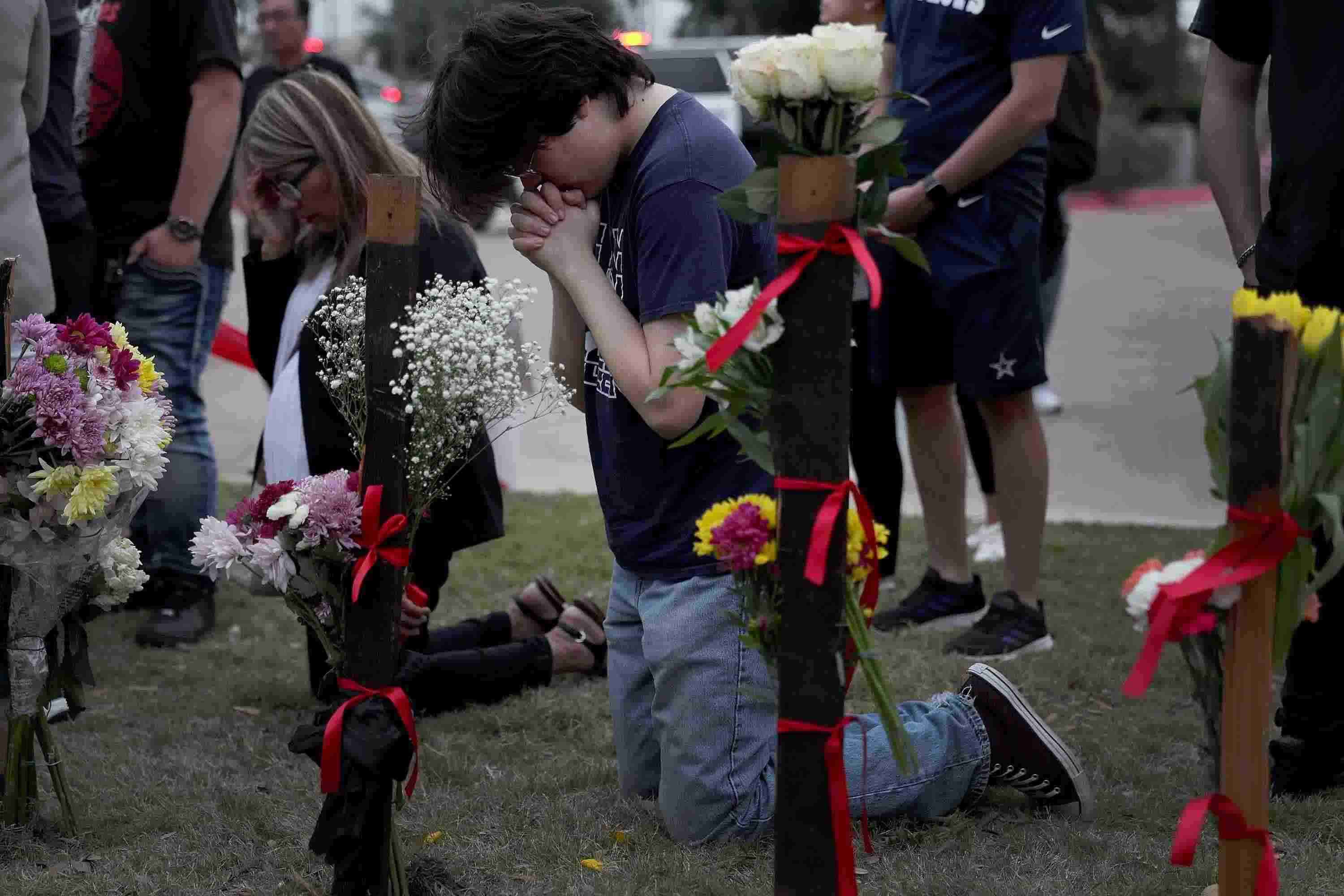 當(dāng)?shù)貢r(shí)間2023年5月7日,美國(guó)得克薩斯州艾倫市,民眾參加守夜活動(dòng)哀悼槍擊事件遇難者。美國(guó)得克薩斯州一家購(gòu)物中心6日發(fā)生槍擊事件,造成包括槍手在內(nèi)的9人死亡、7人受傷。 視覺中國(guó)
