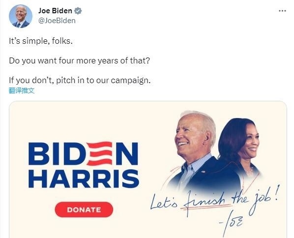 CNN注意到,在特朗普的直播結(jié)束后不久,美國總統(tǒng)拜登在社交媒體上發(fā)出了政治籌款呼吁,并配文稱,“很簡(jiǎn)單,伙計(jì)們。 你還想再那樣過四年嗎?如果你不喜歡,請(qǐng)參與我們的競(jìng)選活動(dòng)?!?/p>
