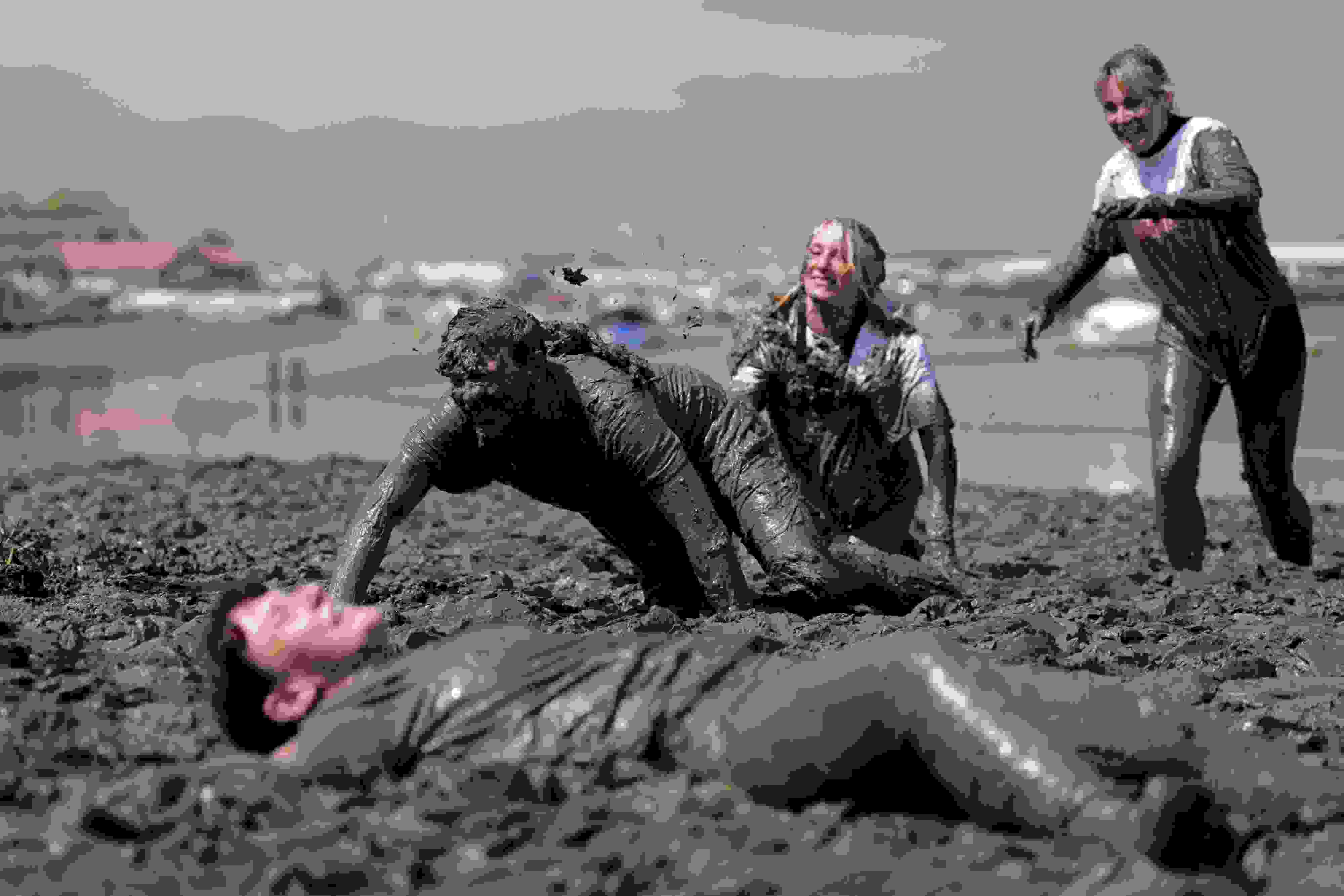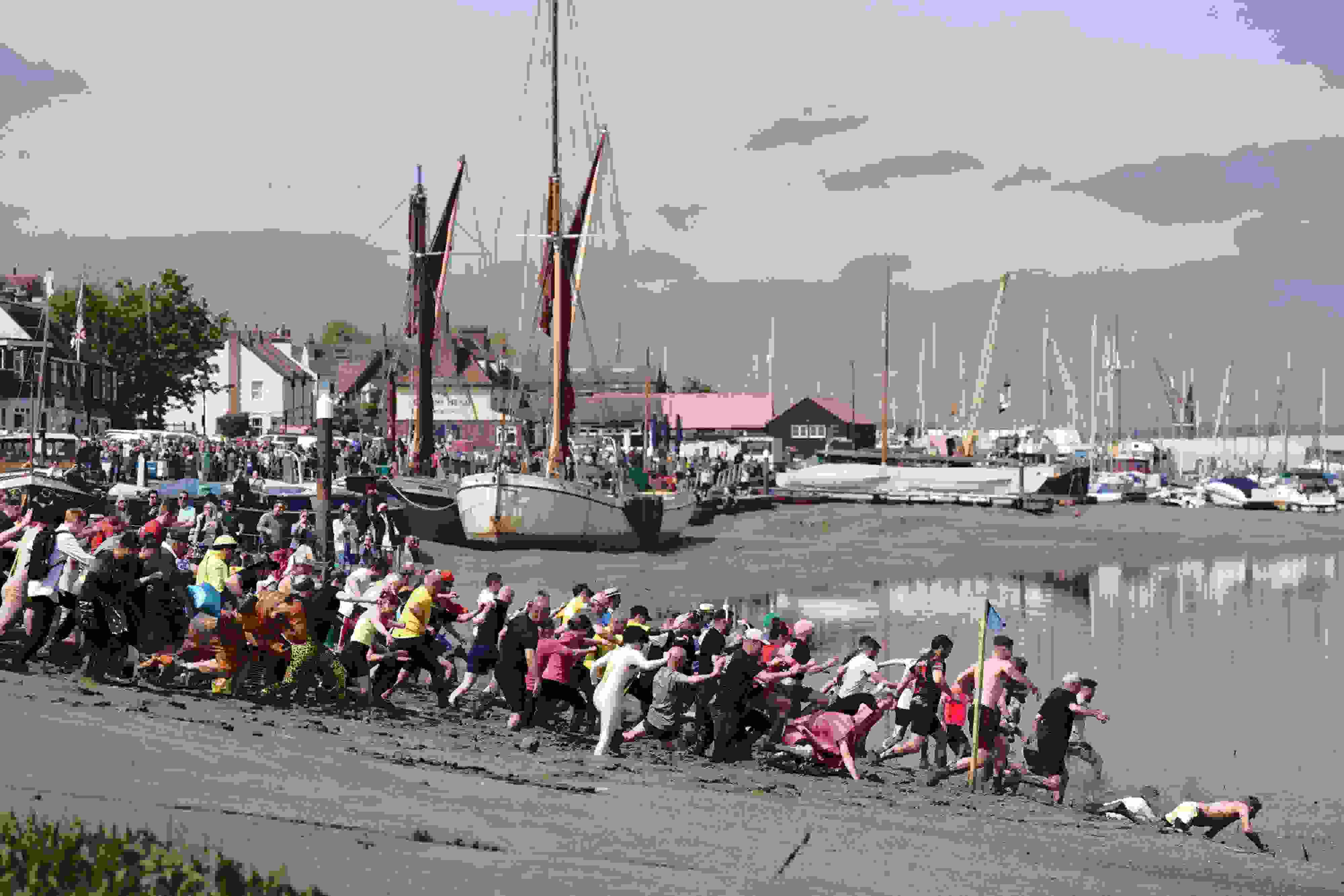 當?shù)貢r間2023年5月14日,英國莫爾登,參賽者參加一年一度的滾泥巴大賽。該大賽是一項慈善活動,參賽者要在埃塞克斯郡的黑水河河床上賽跑。 視覺中國