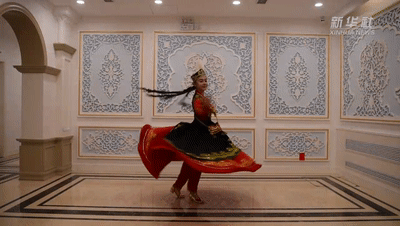 “左旋右轉(zhuǎn)不知疲,千匝萬(wàn)周無(wú)已時(shí)。人間物類無(wú)可比,奔車輪緩旋風(fēng)遲。”充滿活力的跳躍和旋轉(zhuǎn)是胡旋舞最顯著的特征。而經(jīng)過(guò)千年的融合與傳承,這一元素已深深融入到中國(guó)和中亞國(guó)家多種舞蹈形式當(dāng)中。