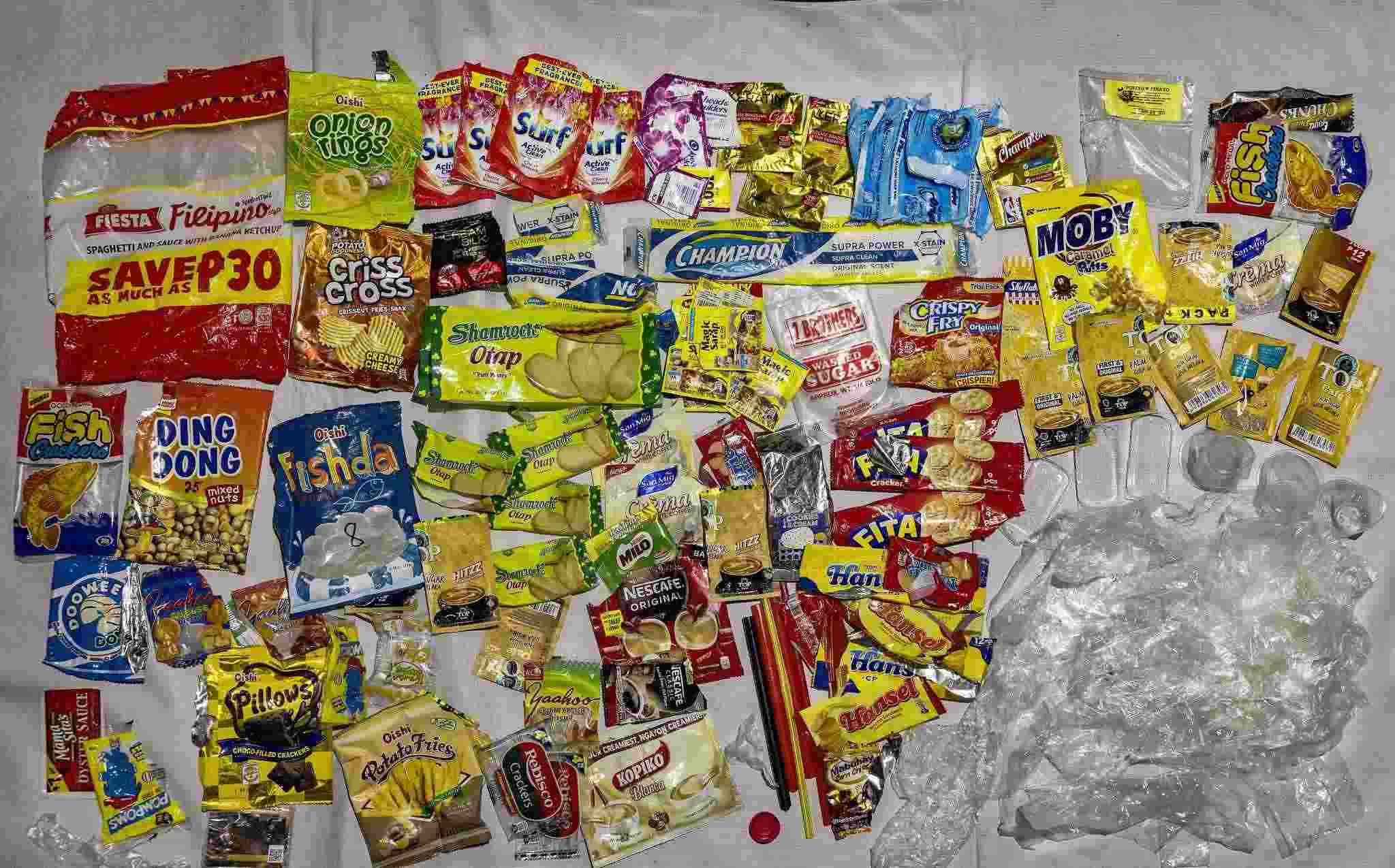 當(dāng)?shù)貢r(shí)間2023年4月20日,菲律賓馬尼拉,奎松市,Mercado家在一周內(nèi)產(chǎn)生的塑料垃圾。