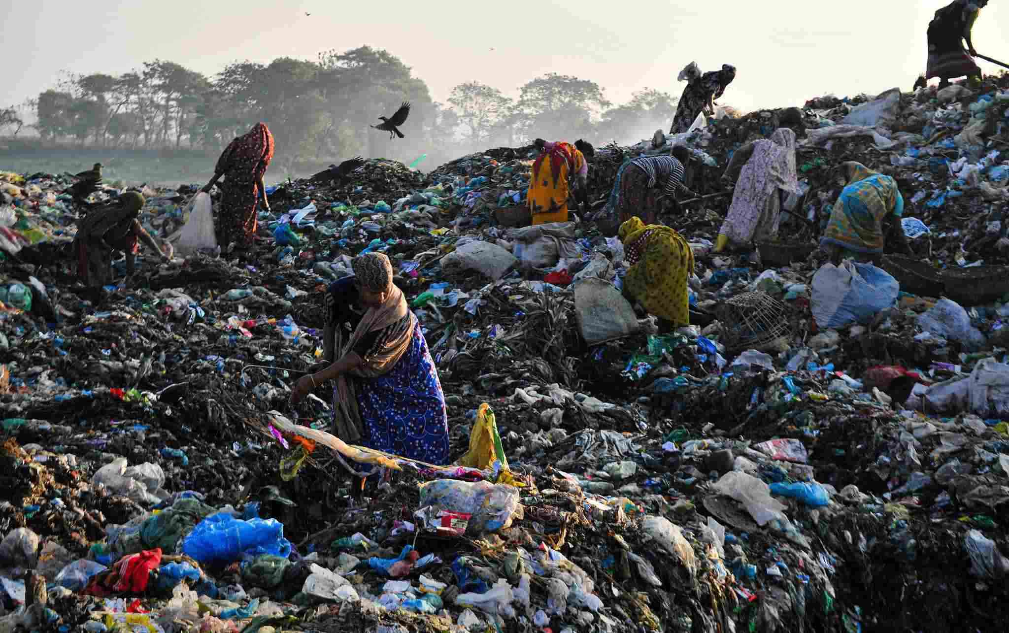 當(dāng)?shù)貢r(shí)間2023年1月2日,孟加拉國(guó)錫爾赫特,工人們?cè)谝粋€(gè)有毒廢物傾倒場(chǎng)工作。
