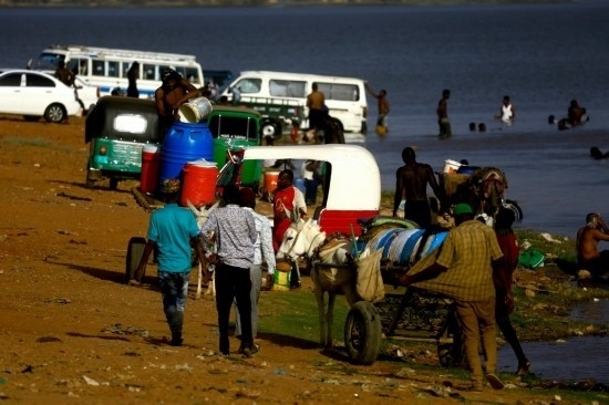 4月17日,由于武裝沖突導致停水,蘇丹喀土穆市民到尼羅河打水。新華社發(fā)(穆罕默德·海德爾攝)