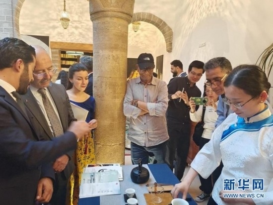 5月22日,在摩洛哥索維拉的“茶和天下·雅集”活動(dòng)暨中摩茶文化展上,嘉賓體驗(yàn)中國茶禮表演。(中國文化中心供圖)