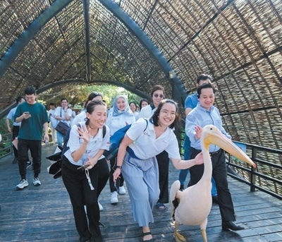 東盟青年在廣東廣州市南沙水鳥世界生態(tài)園參觀。 何中輝攝