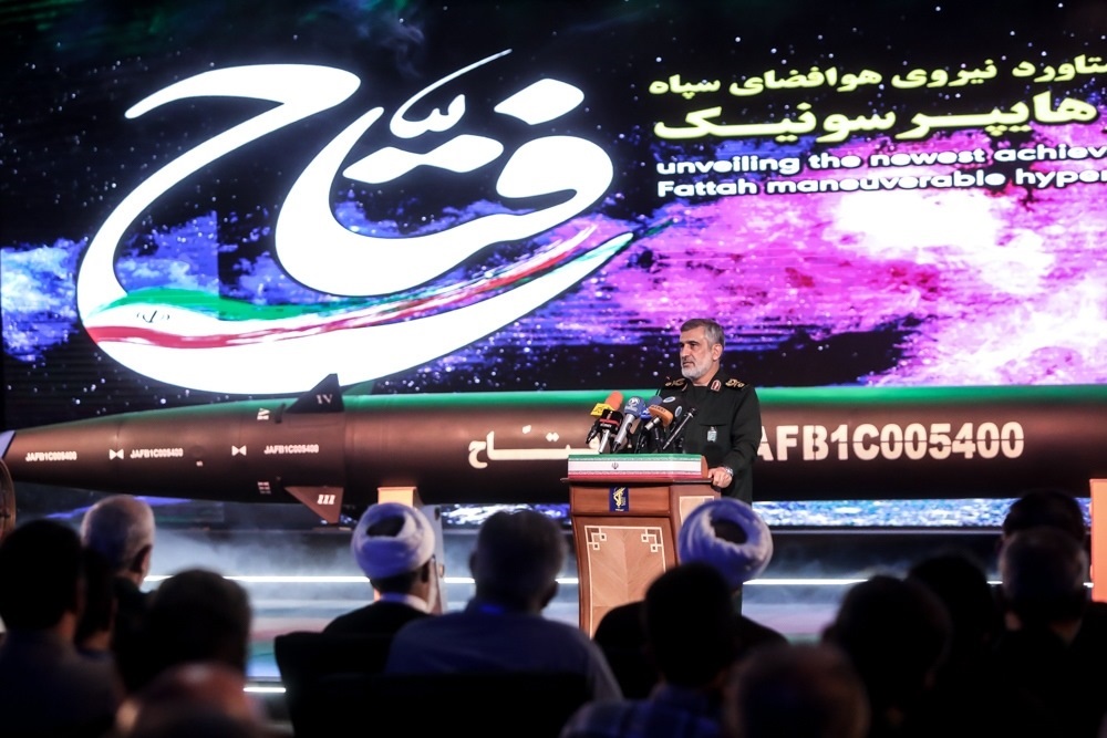 當日,伊朗公開展示首型國產(chǎn)高超音速導彈“征服者”,說這種新型彈道導彈最大速度可以達到15馬赫、即15倍音速。伊朗總統(tǒng)易卜拉欣·萊希、伊朗伊斯蘭革命衛(wèi)隊司令侯賽因·薩拉米參加了揭幕儀式。伊朗伊斯蘭革命衛(wèi)隊航空航天部隊司令阿米爾-阿里·哈吉扎德在儀式上介紹,“征服者”導彈最大射程為1400公里,擊中目標前速度可達13至15馬赫。 視覺中國