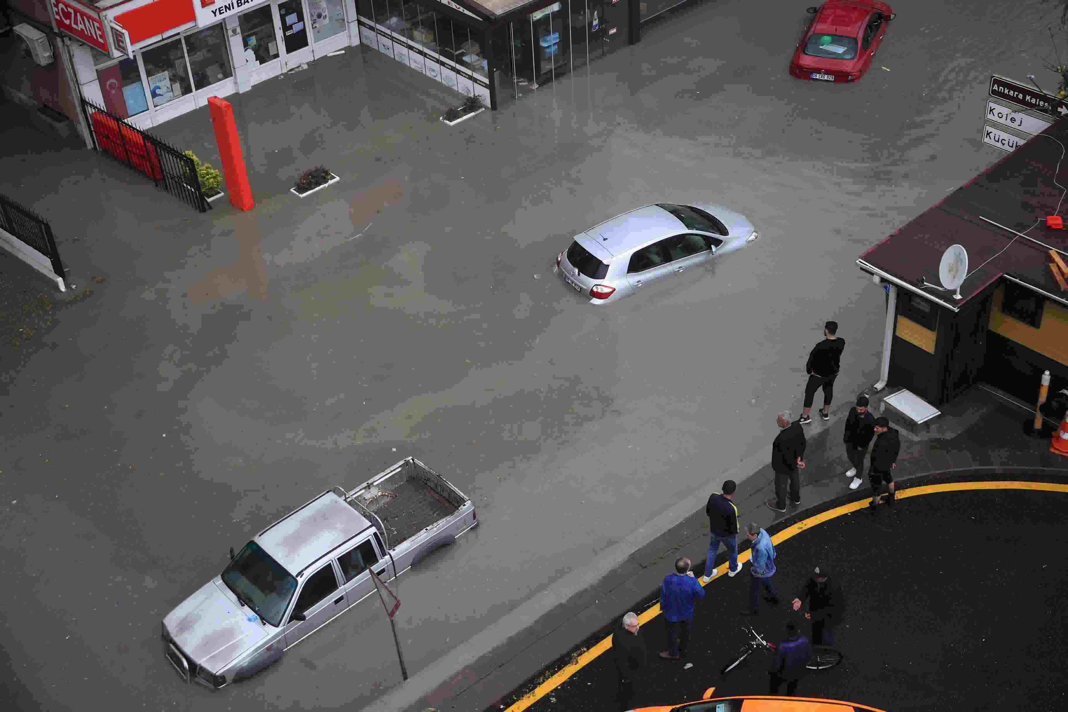 當?shù)貢r間2023年6月11日,土耳其安卡拉,暴雨襲擊后,洪水淹沒街道。 視覺中國