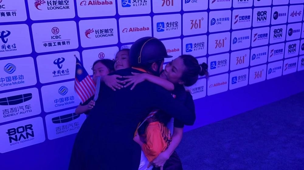“今天對我來說太重要了,我的妻子、孩子在場邊目睹了這一刻,這是一場永遠(yuǎn)值得回憶的比賽。我等這枚金牌已經(jīng)25年了,以前我只獲得過銅牌和銀牌?!卑舶涂瞬粌H實現(xiàn)了個人突破,也贏得了馬來西亞馬術(shù)項目的第一塊亞運金牌。