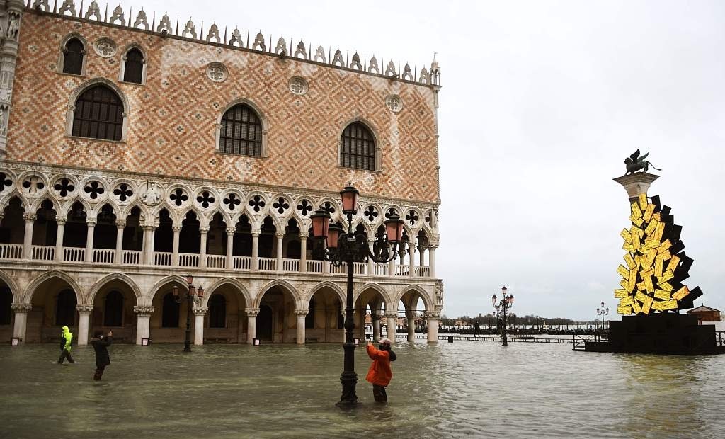 當(dāng)?shù)貢r間2020年12月8日,意大利威尼斯,遭遇強降雨天氣,強降雨隨之帶來洪水災(zāi)害,居民生活受到影響。