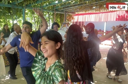 使節(jié)們與新疆民眾一起跳舞 央視新聞?dòng)浾?吳倩 攝
