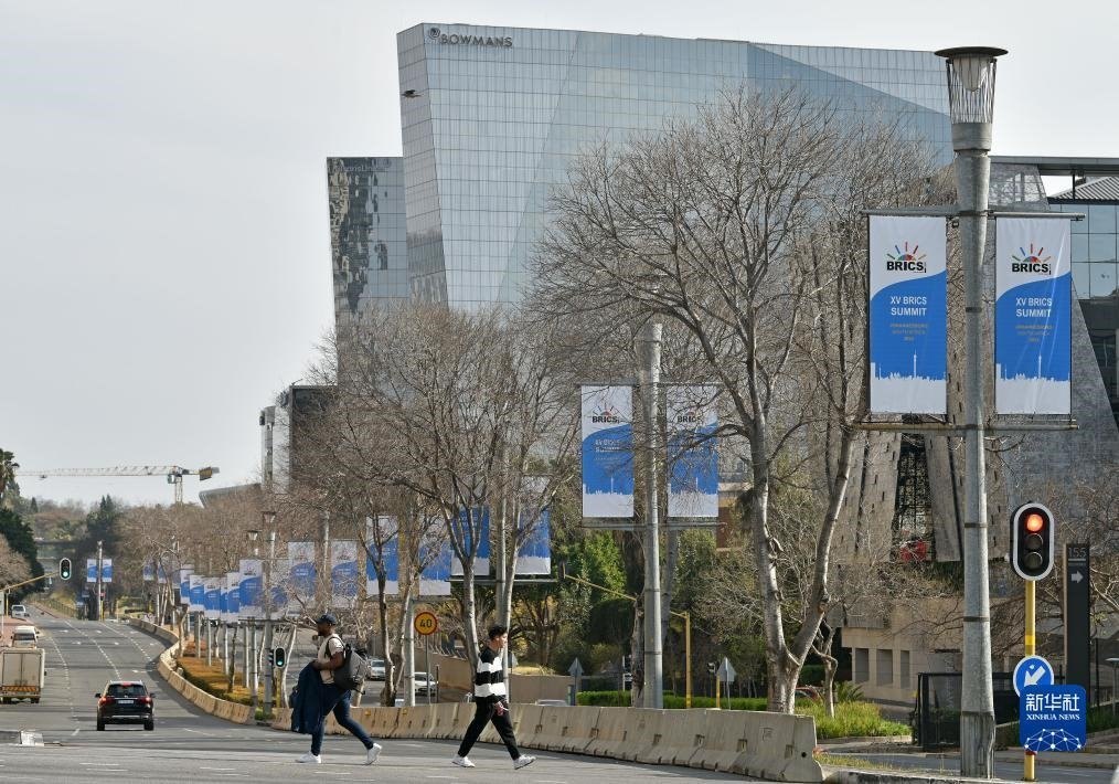 這是8月17日在南非約翰內(nèi)斯堡拍攝的金磚峰會條幅。新華社記者 陳誠 攝