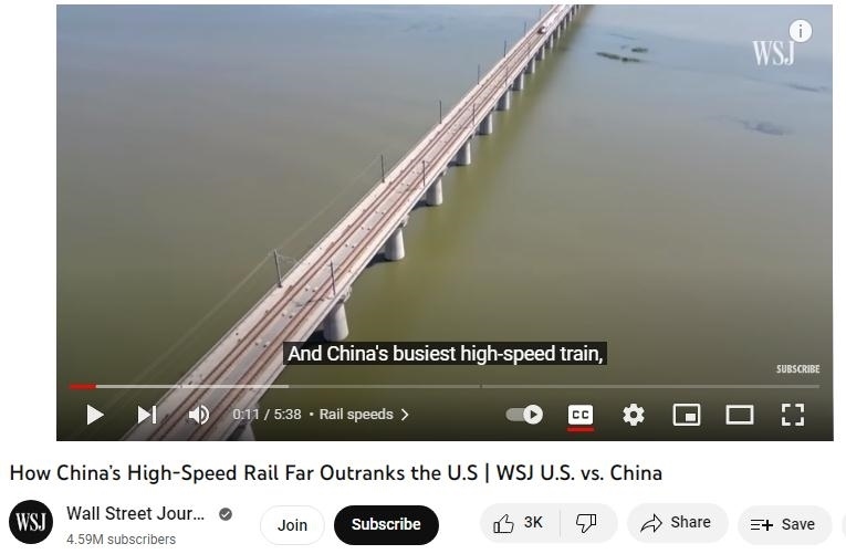 美國媒體對中美高鐵差距一直都很關(guān)注。今年6月,《華爾街日報》在題為《為什么中國的高鐵遠(yuǎn)超美國》的視頻報道中指出,盡管美國一直在努力開發(fā)自己的高速鐵路,但美國的高鐵發(fā)展遠(yuǎn)遠(yuǎn)落后于中國。