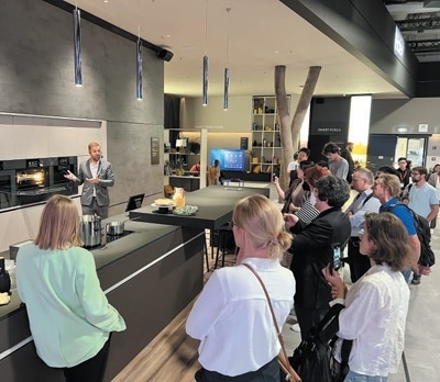 在2022年柏林國際消費電子展期間,參觀者在卡薩帝展臺前了解智能廚房設(shè)備。本報記者 李 強攝