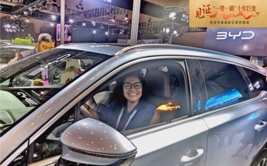 ▲ 記者在智博會(huì)體驗(yàn)中國(guó)新能源汽車