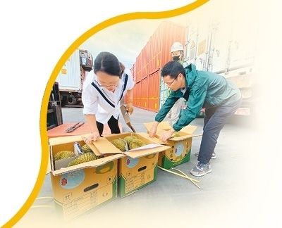 “針對(duì)水果等生鮮農(nóng)產(chǎn)品特點(diǎn),我們采取7×24小時(shí)預(yù)約通關(guān),設(shè)置農(nóng)食產(chǎn)品專(zhuān)用窗口,優(yōu)先辦理鮮活易腐農(nóng)產(chǎn)品接單、放行業(yè)務(wù),并采取即到即檢即放模式,確保進(jìn)口水果通關(guān)零延遲?!臂屡D海關(guān)關(guān)長(zhǎng)韓斌說(shuō)。