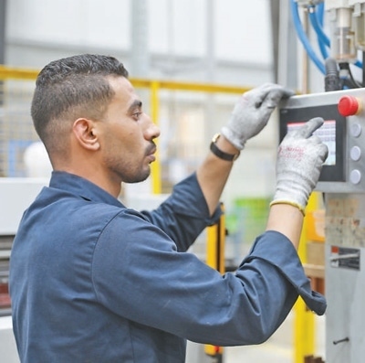 在中?!ぬ┻_蘇伊士經(jīng)貿(mào)合作區(qū)內(nèi),當(dāng)?shù)毓と嗽诓僮髟O(shè)備。本報記者 張志文攝