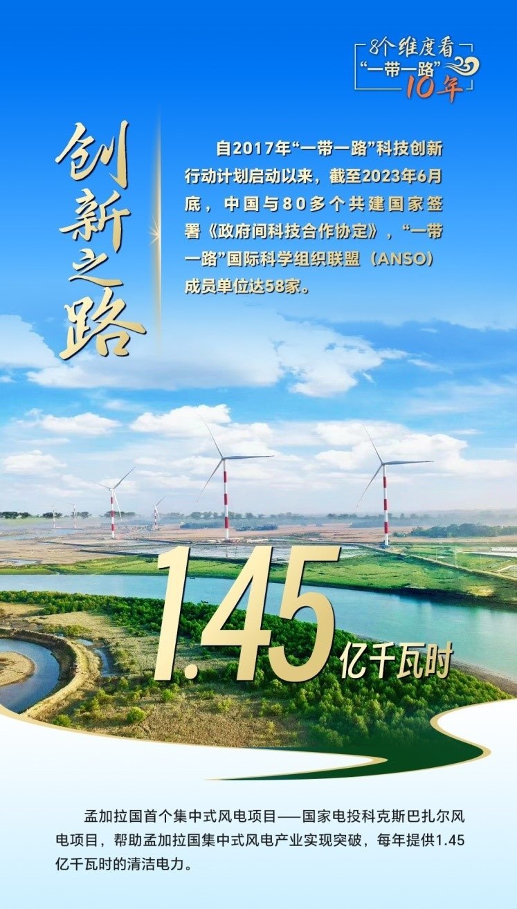 10年來(lái),創(chuàng)新始終是一個(gè)關(guān)鍵詞,中國(guó)與共建國(guó)家加強(qiáng)科技創(chuàng)新合作,加速集聚創(chuàng)新資源,為共建“一帶一路”注入強(qiáng)勁動(dòng)力。截至2023年6月底,中國(guó)與80多個(gè)共建國(guó)家簽署《政府間科技合作協(xié)定》,“一帶一路”國(guó)際科學(xué)組織聯(lián)盟(ANSO)成員單位達(dá)58家;2013年以來(lái),中國(guó)支持逾萬(wàn)名共建國(guó)家青年科學(xué)家來(lái)華開(kāi)展短期科研工作和交流,累計(jì)培訓(xùn)共建國(guó)家技術(shù)和管理人員1.6萬(wàn)余人次;累計(jì)幫助50多個(gè)非洲國(guó)家建成20多個(gè)農(nóng)業(yè)技術(shù)示范中心,在農(nóng)業(yè)、新能源、衛(wèi)生健康等領(lǐng)域啟動(dòng)建設(shè)50余家“一帶一路”聯(lián)合實(shí)驗(yàn)室。