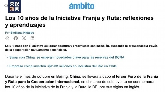 阿根廷著名經(jīng)濟(jì)類日?qǐng)?bào)《金融界報(bào)》在官網(wǎng)發(fā)表評(píng)論文章,回顧了共建“一帶一路”倡議的發(fā)展歷程和帶給世界的思考和借鑒。文章稱,經(jīng)過(guò)十年發(fā)展,該倡議已覆蓋全球150多個(gè)國(guó)家,為世界互利共贏合作樹(shù)立了榜樣。