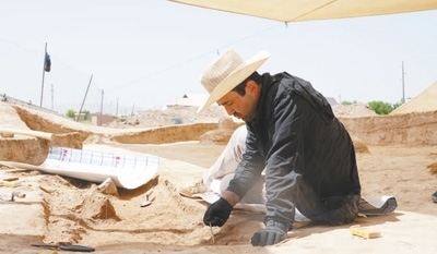 5月,比龍在位于烏茲別克斯坦南部城市拜松的拉巴特遺址進行考古挖掘。 孫和筱攝