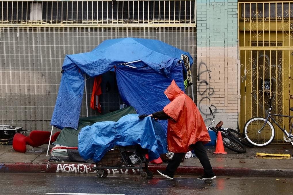 這是2023年1月10日在美國洛杉磯市中心街道上拍攝的無家可歸者。新華社發(fā)