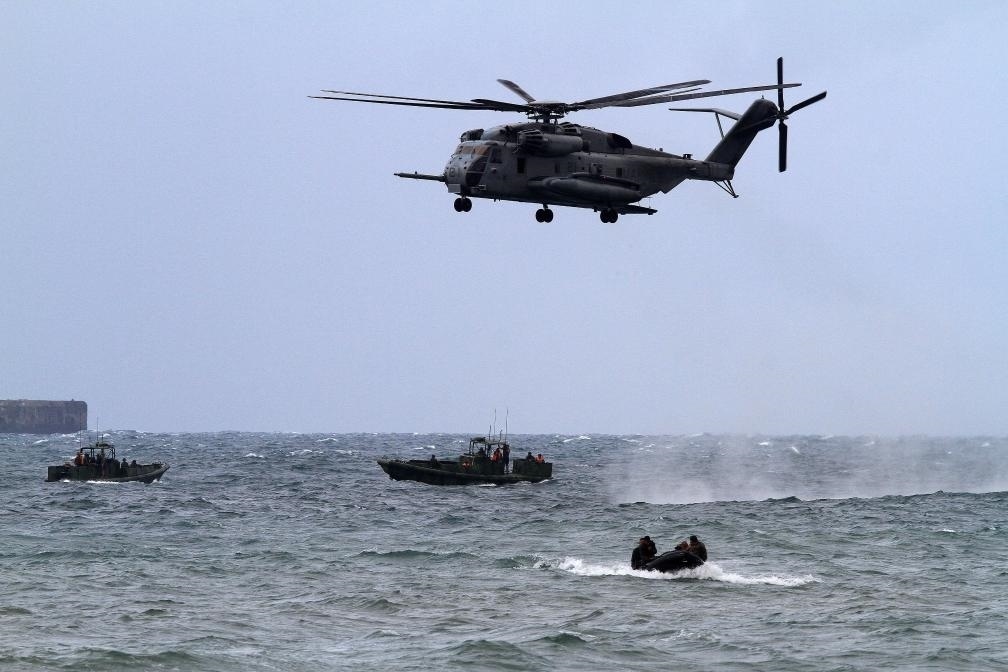 2013年9月20日,在菲律賓甲米地省,一架美軍CH-53E軍用直升機運載美國和菲律賓士兵參加演習(xí)。新華社發(fā)(烏馬利攝)