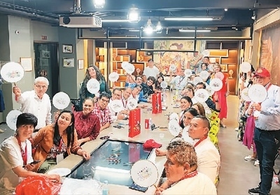 “漢語(yǔ)橋”哥倫比亞教育工作者訪華團(tuán)組到天津楊柳青古鎮(zhèn)體驗(yàn)?zāi)戤?huà)制作。