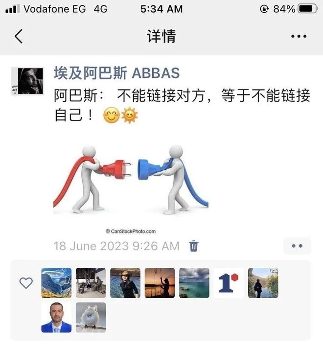 “你就是像一棵樹,根很穩(wěn)定,樹葉在天上?!边@是阿巴斯微信朋友圈里的一句話,也是他生活和工作的寫照。那深入泥土的遒勁的“根”,是他對中文和中國文化的不斷深入學(xué)習(xí),是不斷發(fā)展的中埃友誼,是不斷走深走實的共建“一帶一路”倡議;那姿態(tài)昂揚、伸向天空的輕盈的“葉”,是他由“小我”走向“大我”穩(wěn)步實現(xiàn)的夢想,是他對更美好明天的熱切期待。