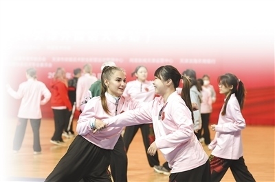 在2023年11月舉行的2023年在華留學生武術(shù)訓練營(天津外國語大學站)活動上,外國留學生學習中國傳統(tǒng)武術(shù)。劉東岳攝(影像中國)