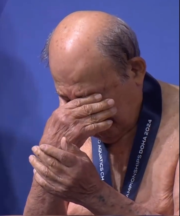 2024多哈游泳世錦賽正在進(jìn)行中。其間一位百歲老者,吸引了全世界目光。