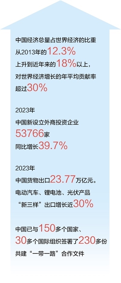 丁純:在局部地區(qū)地緣政治緊張等挑戰(zhàn)下,中國繼續(xù)發(fā)揮促進(jìn)世界經(jīng)濟(jì)增長的引擎作用——中國繼續(xù)支持多邊主義和自由貿(mào)易,貨物貿(mào)易總額居世界第一,發(fā)布穩(wěn)外資24條政策措施,宣布全面取消制造業(yè)領(lǐng)域外資準(zhǔn)入限制措施,同時(shí)通過共建“一帶一路”推進(jìn)交通、信息等基礎(chǔ)設(shè)施建設(shè)和貿(mào)易投資自由化便利化。