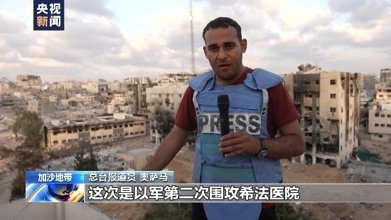總臺(tái)報(bào)道員 奧薩馬:我們還觀察到,我身后的希法醫(yī)院附近的民居被大量摧毀,醫(yī)院附近的民房全都成為以軍襲擊目標(biāo)。只因?yàn)橐攒娍紤]到這些房屋可能對(duì)駐扎在醫(yī)院的以軍構(gòu)成危險(xiǎn)。這景象非常悲慘,這里還有一處臨時(shí)墓地被炸毀,其中埋葬的大量遺體已不知去向。這里埋葬的是以軍第一次圍攻希法醫(yī)院時(shí)身亡的人。這次是以軍第二次圍攻希法醫(yī)院,而這次圍攻對(duì)于醫(yī)院以及附近的每個(gè)人來(lái)說(shuō),都是痛苦和血腥的回憶。