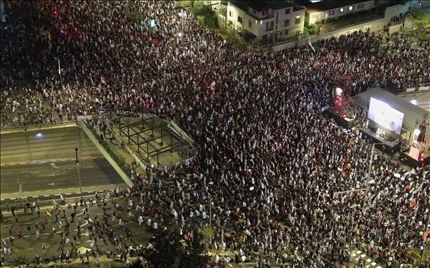 當(dāng)?shù)貢r(shí)間6日晚,在特拉維夫舉行的反政府集會(huì)上,一輛汽車(chē)突然沖撞人群,造成5名抗議者受傷 圖源:《以色列時(shí)報(bào)》