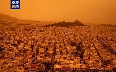 當(dāng)?shù)貢r(shí)間23日,希臘雅典遭遇來自非洲撒哈拉沙漠的沙塵侵襲。當(dāng)天在希臘議會(huì)大樓附近拍攝的畫面顯示,雅典城市上空變成橙黃色,樓房和街道籠罩在沙塵之中。