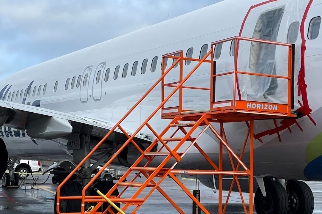 △1月5日,一架波音737 MAX 9型客機在飛行期間一處門塞脫落