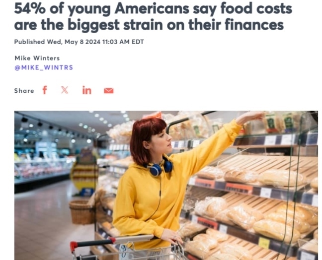 考慮到食品價格在過去四年里上漲了25%,而消費者價格指數(shù)(cpi)追蹤的所有商品的漲幅為21%,因此食品價格對年輕人的沖擊最大或許并不奇怪。