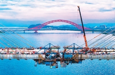近日,浙江寧波舟山港六橫公路大橋一期項(xiàng)目梅山水道橋即將合龍。該大橋建成后,可實(shí)現(xiàn)六橫島、佛渡島、梅山島三島港區(qū)、產(chǎn)業(yè)聯(lián)動發(fā)展,推動甬舟一體化駛?cè)搿翱旌降馈?。胡學(xué)軍攝(人民視覺)